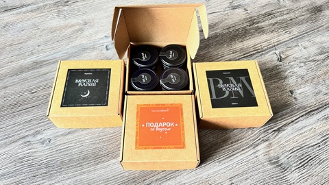 Средняя коробка вмещает 4 больших банок. Соляная плитка или шоколад не поместятся. Габариты (Д х Ш х В): 15 х 15 х 7 см